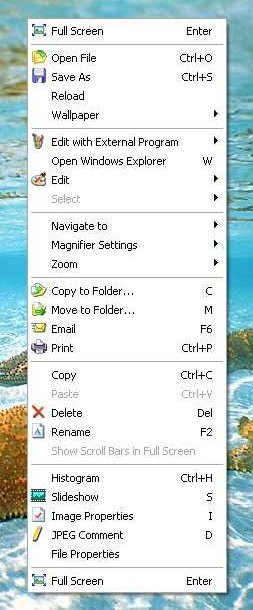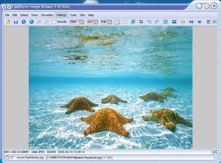FastStone Image Viewer is a fast, stable, user-friendly image browser, converter and editor. It has a nice array of features that include image viewing, management, comparison, red-eye removal, emailing, resizing, cropping and color adjustments. Its innovative but intuitive full-screen mode provides quick access to EXIF information, thumbnail browser and major functionalities via hidden toolbars that pop up when your mouse touches the four edges of the screen. Other features include a high quality magnifier and a musical slideshow with 150+ transitional effects, as well as lossless JPEG transitions, drop shadow effects, image annotation, scanner support, histogram and much more. It supports all major graphic formats (BMP, JPEG, JPEG 2000, animated GIF, PNG, PCX, TIFF, WMF, ICO and TGA) and popular digital camera RAW formats (CRW, CR2, NEF, PEF, RAF, MRW, ORF, SRF and DNG).