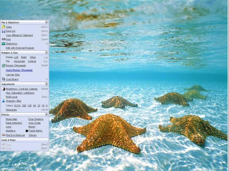 - Image special effects: watermark, annotation, drop shadow, framing, bump map, lens, morph, waves