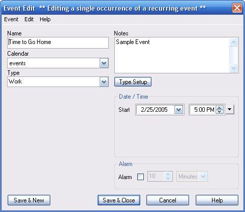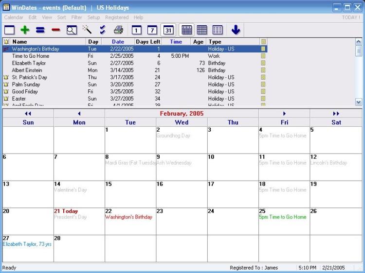 of event. The WinDates calendar software